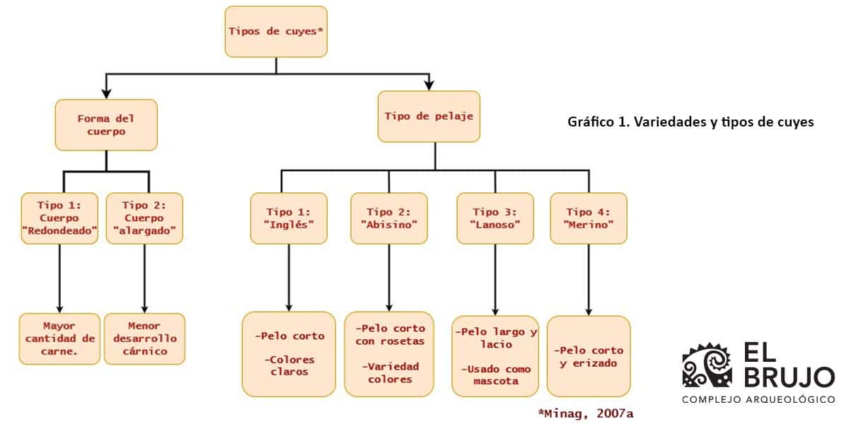 No queda clara la variedad de razas de los cuyes durante la época prehispánica; sin embargo, los ejemplares momificados muestran que los cuyes domésticos presentaban un mayor tamaño y peso en contraste con los cuyes silvestres. Además, los cuyes domésticos tenían mayor variedad de color de pelaje, mientras que los silvestres tienden a presentar un pelaje de color pardo y homogéneo (Sandweiss & Wing, 1997).