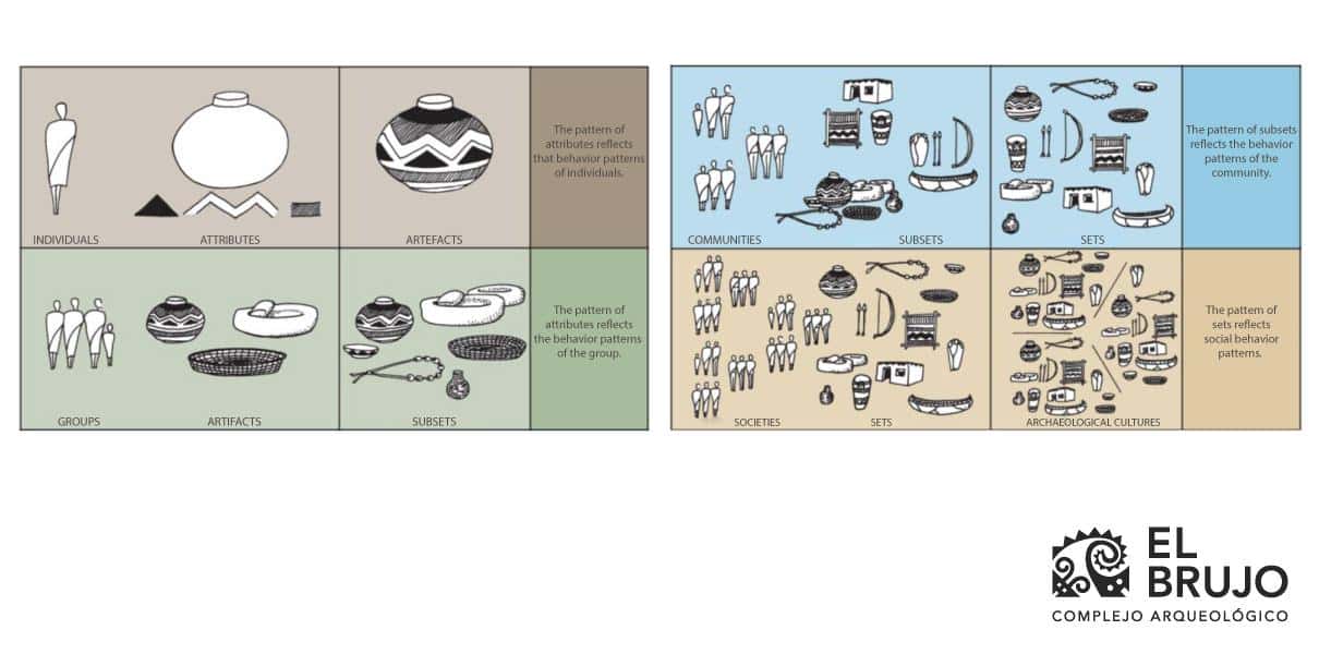 Figure 1. Terms used in archaeological classification that led to the identification of cultures and societies, from the basic individual attributes (form, decoration) of a vessel to the complete archaeological culture. Taken from (Deetz 1967:107; Renfrew and Bahn 2012:118).