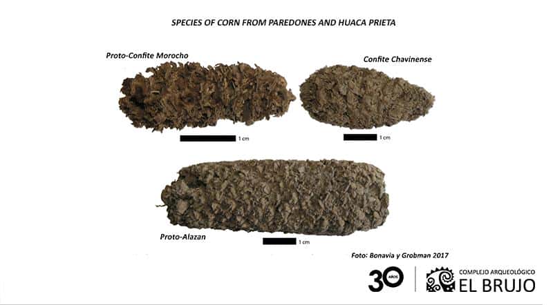 Huaca Prieta, a site located in the southernmost part of the El Brujo Archaeological Complex, has the most ancient remains of corn in the Andes, with samples dating back to 6500 years. Since then, and in its subsequent pre-ceramic occupations, the following species of corn were identified: Proto-Confite Morocho, Confite Chavinense, Proto Kculli and Proto-Alazán. [3]
