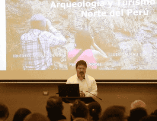 Inauguración del IV Coloquio de Arqueología, a cargo de Ingrid Claudet Lascosque, gerente general de la Fundación Wiese.